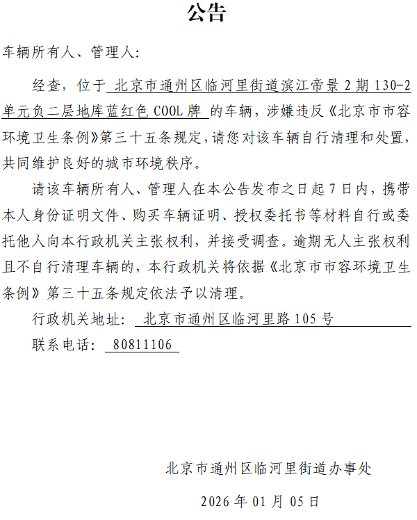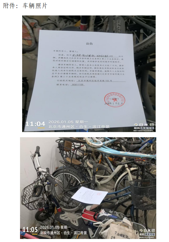 北京市通州区临河里街道办事处废弃非机动车公告9