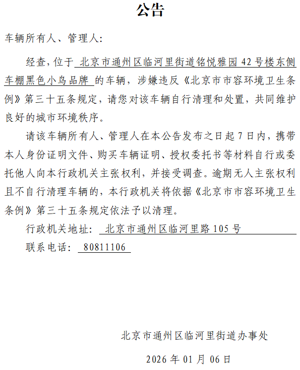 北京市通州区临河里街道办事处废弃非机动车公告10