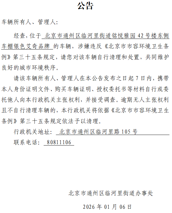 北京市通州区临河里街道办事处废弃非机动车公告11