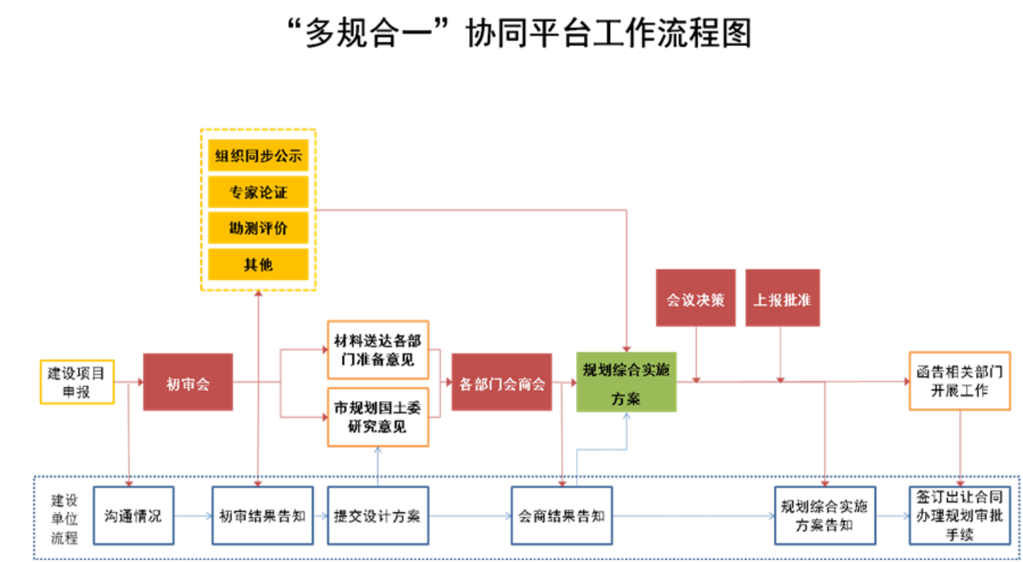 坚持需求导向,创新做法重塑流程。通过“多规合一”协同平台,充分发挥规划国土部门统筹协调作用,规范行政部门之间的协调和决策程序,减少审批环节,优化办事流程。