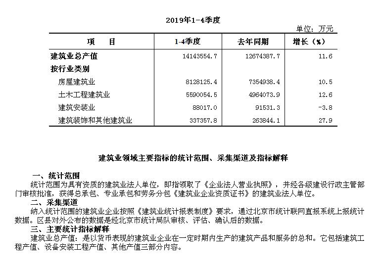 通州区2019年1-4季度建筑业总产值(按行业类别)