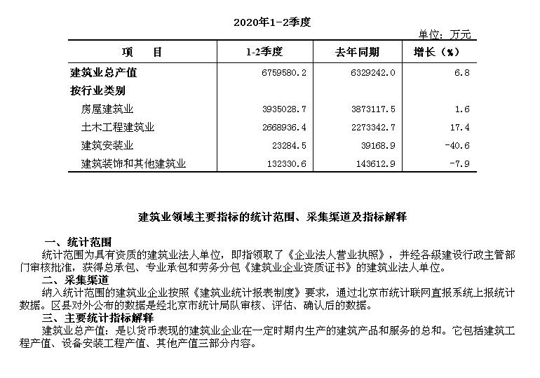 通州区2020年1-2季度建筑业总产值(按行业类别)