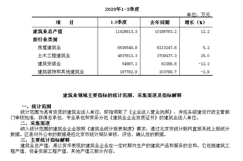 通州区2020年1-3季度建筑业总产值(按行业类别)