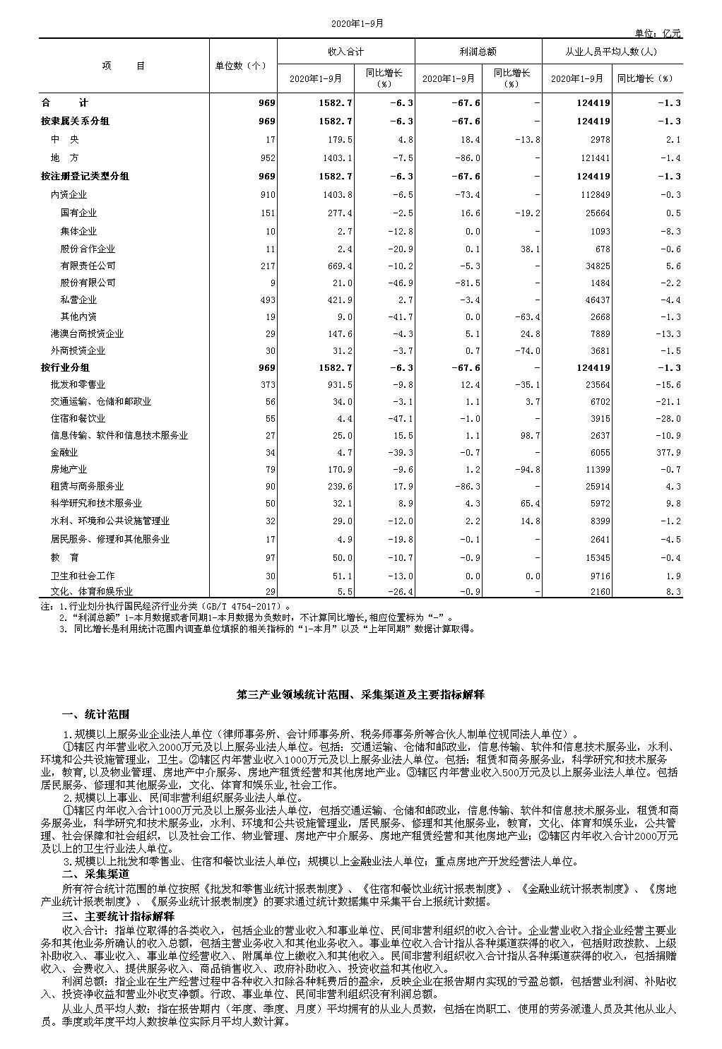 通州区2020年1-9月规模以上第三产业法人单位主要经济指标(按登记注册类型、行业分组)