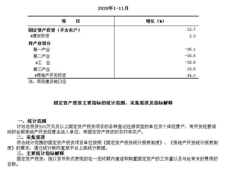 通州区2020年1-11月固定资产投资 (不含农户)