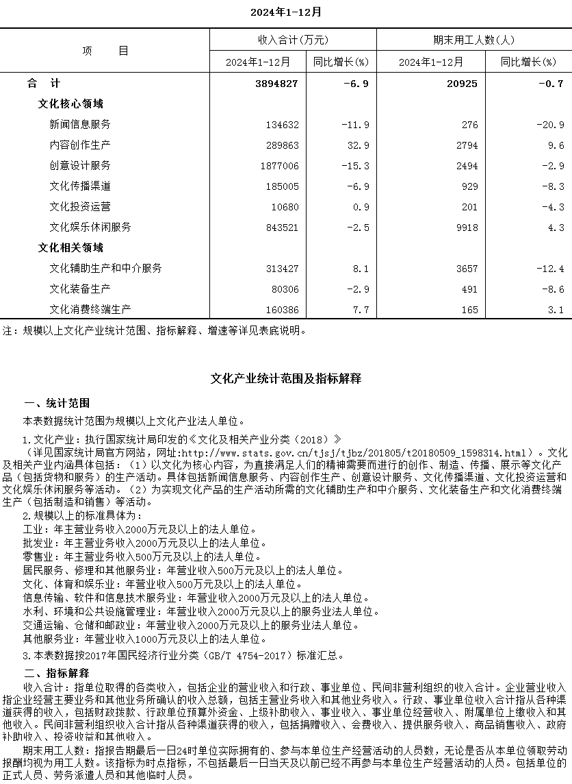 附件下载:通州区2024年1-12月规模以上文化产业情况