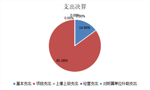 2024年度本年支出合计38061.74万元,比上年减少29653.37万元,下降43.79%,其中:基本支出5686.27万元,占支出合计的14.94%;项目支出32375.47万元,占支出合计的85.06%;上缴上级支出0.00万元,占支出合计的0.00%;经营支出0.00万元,占支出合计的0.00%;对附属单位补助支出0.00万元,占支出合计的0.00%。