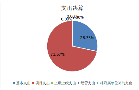 2024年度本年支出合计50063.56万元,比上年增加13302.53万元,增长36.19%,其中:基本支出14183.75万元,占支出合计的28.33%;项目支出35879.81万元,占支出合计的71.67%;上缴上级支出0.00万元,占支出合计的0.00%;经营支出0.00万元,占支出合计的0.00%;对附属单位补助支出0.00万元,占支出合计的0.00%。