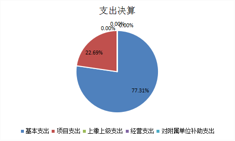 2024年度本年支出合计2300.68万元,比上年增加0.53万元,增长0.02%,其中:基本支出1778.58万元,占支出合计的77.31%;项目支出522.09万元,占支出合计的22.69%;上缴上级支出0.00万元,占支出合计的0.00%;经营支出0.00万元,占支出合计的0.00%;对附属单位补助支出0.00万元,占支出合计的0.00%。