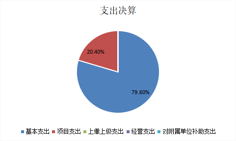 2024年度本年支出合计96.87万元,比上年增加96.87万元,其中:基本支出77.10万元,占支出合计的79.6%;项目支出19.76万元,占支出合计的20.4%;上缴上级支出0.00万元,占支出合计的0.00%;经营支出0.00万元,占支出合计的0.00%;对附属单位补助支出0.00万元,占支出合计的0.00%。