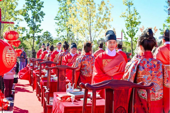 10月19日上午,潞源街道联合北京市直机关团工委、中国青年网共同举办北京市直机关青年集体婚礼。来自市直机关单位、潞源街道及中国青年网自2024年6月以来登记结婚的12对新人积极参与。婚礼特别携手北京服装学院,为新人量身定制专属礼服,彰显独特仪式感。现场设置“爱的祝福、爱的见证、爱的传递”等环节,并融入“执手书同心”“投壶庆佳期”“漆扇绘良缘”等文化互动体验。仪式遵循中式传统流程,组织却扇礼、同牢礼、合卺礼、结发礼等仪式。世界冠军冰雪伉俪庞清、佟健夫妇作为证婚人,为新人送上祝福。市直机关工委、团市委等单位领导出席活动,并向新人赠予结婚启事报纸与纪念物。新人代表发出倡议,号召机关青年积极响应党中央和市委号召,传承优良家风,弘扬家庭美德,厚植家国情怀。