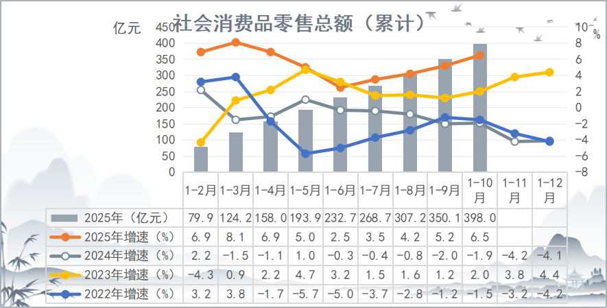 通州区2025年1-10月社会消费品零售总额(累计)