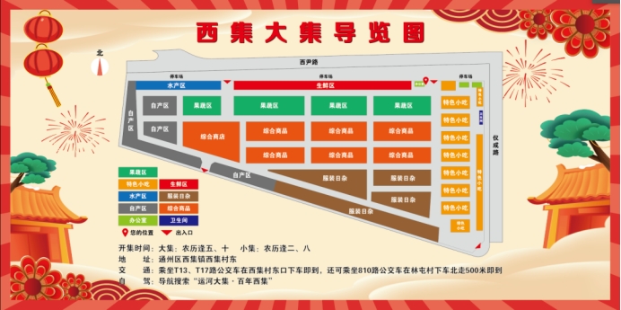 据介绍,西集大集会在农历逢五、十举办,小集会在农历逢二、八举办。游客可乘坐T13、T17路公交车到西集村东口下车,或乘坐810路公交车在林屯村下车。