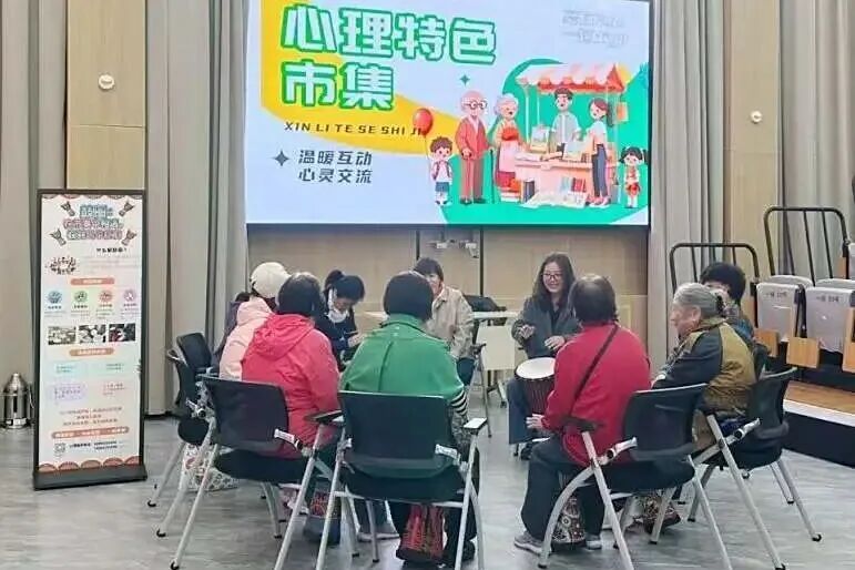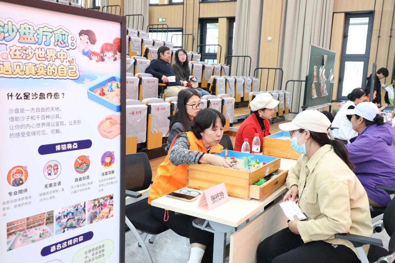 活动现场还设置了“心理特色市集”和互动体验环节,让居民们直观感受心理服务的实用性与趣味性,进而深入了解工作室未来的服务内容与运行机制。心理市集被划分为多个特色板块,包括鼓圈互动、沙盘游戏、OH卡探索以及老年专属游戏等丰富多样的活动。