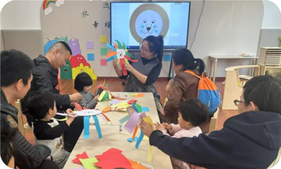 通过入园前的深度访谈,全面掌握幼儿作息、饮食偏好、特殊需求等信息;标准化管理与透明化反馈机制,使家长能够实时了解幼儿在园动态。园所积极搭建家园共育平台,通过公众号分享育儿知识、开设育儿专线答疑。每周定期举办亲子体验日,邀请家长参与绘本共读、五感手工、趣味游戏等活动,教师现场示范指导,帮助家长学习科学育儿方法,形成共育的良好格局。